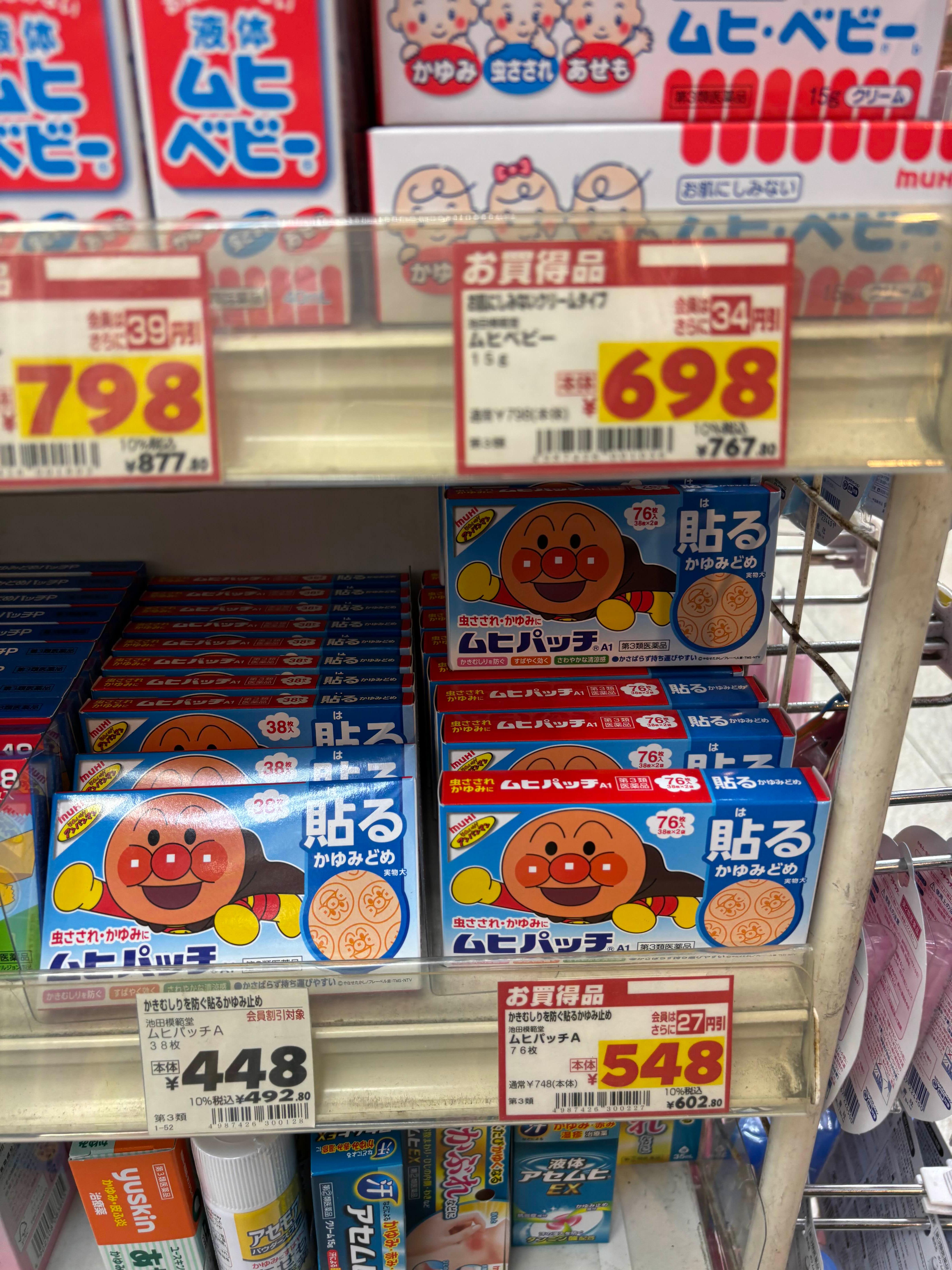 - 호빵맨 패치 (76매): 548엔 (세금 포함 602엔)