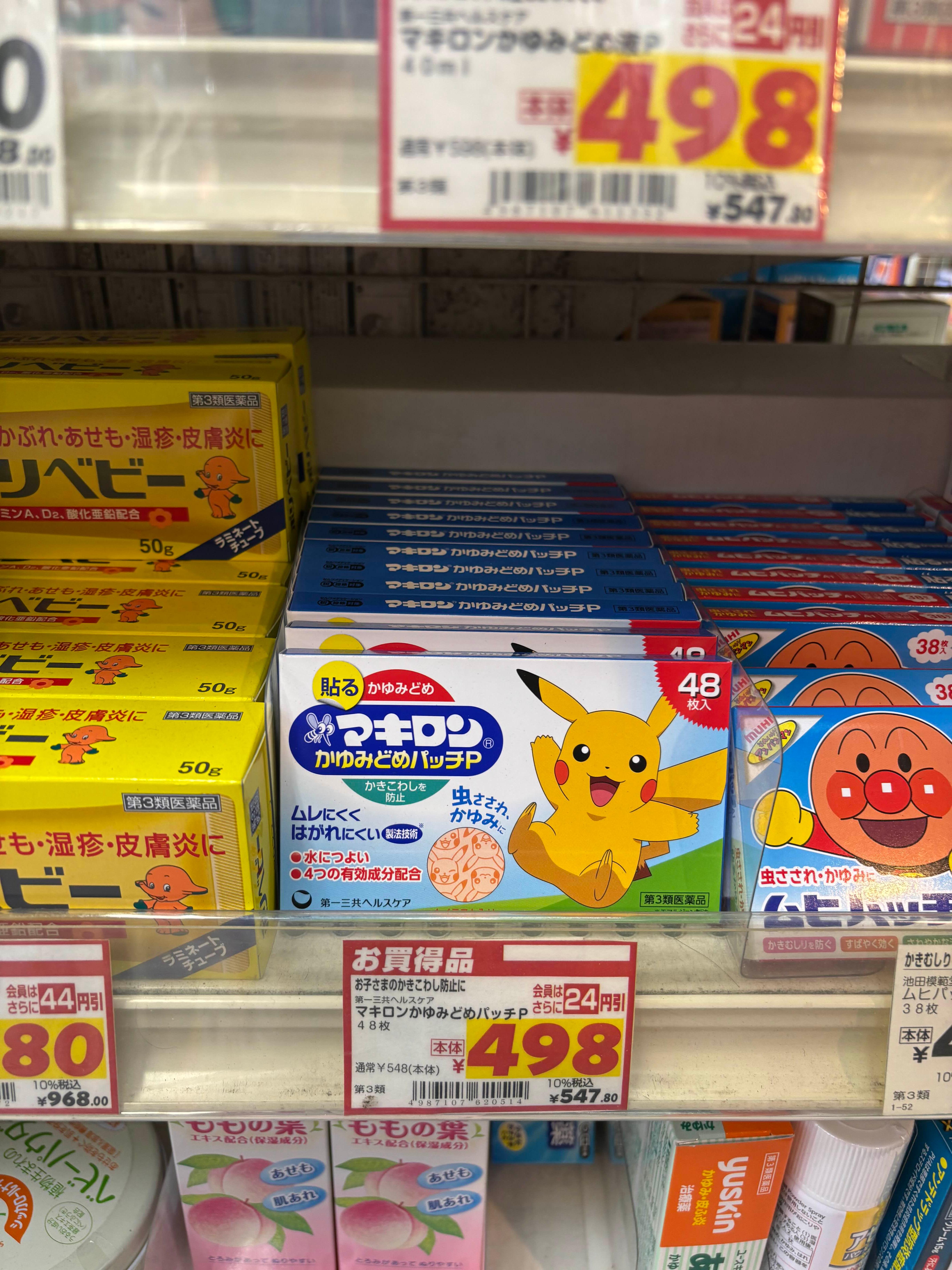 피카츄 패치 마키론 모기패치 (48매): 498엔 (세금 포함 547엔)