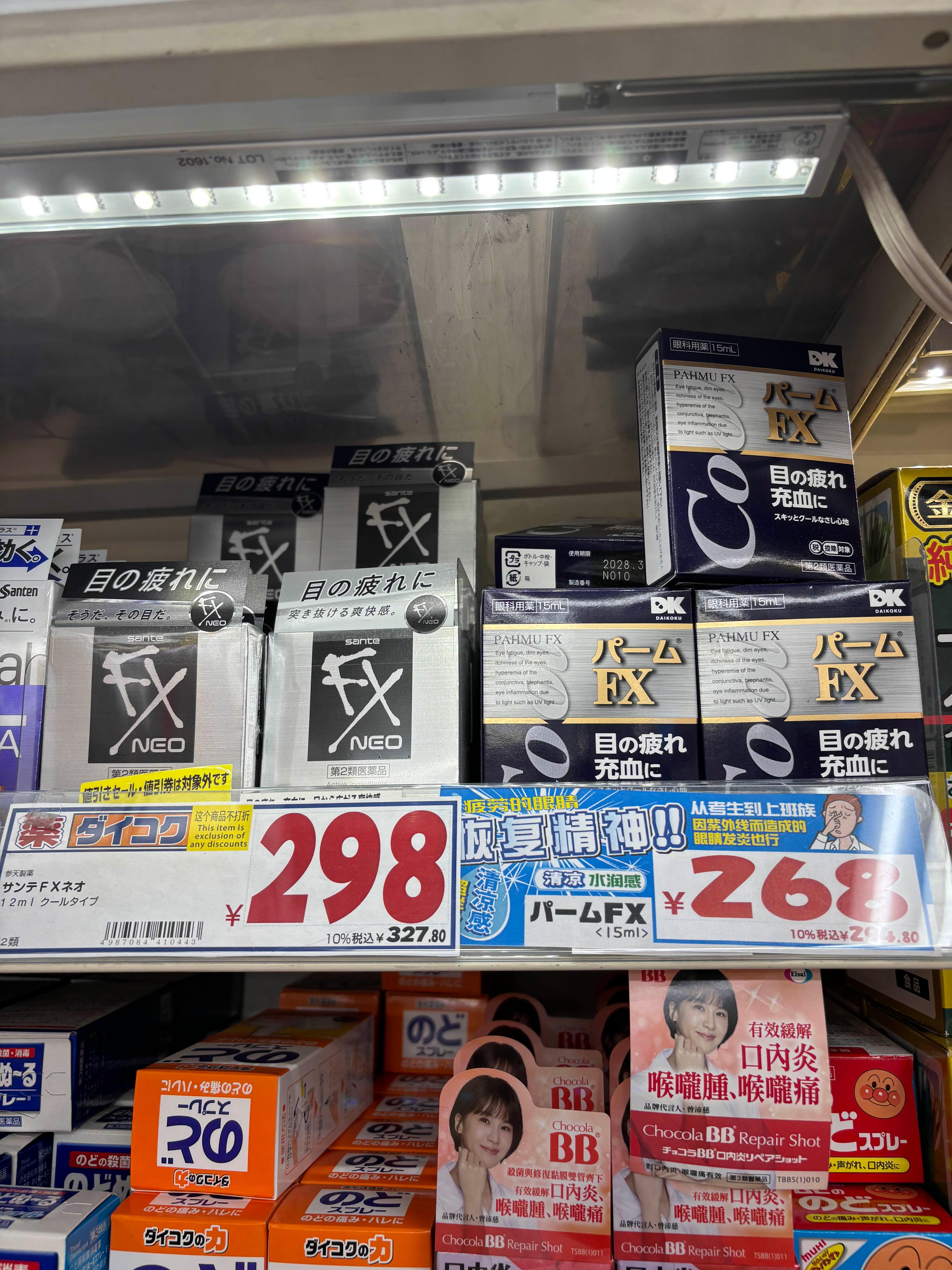 - 안약 산티 FX Neo (12ml): 298엔 (세금 포함 327엔)