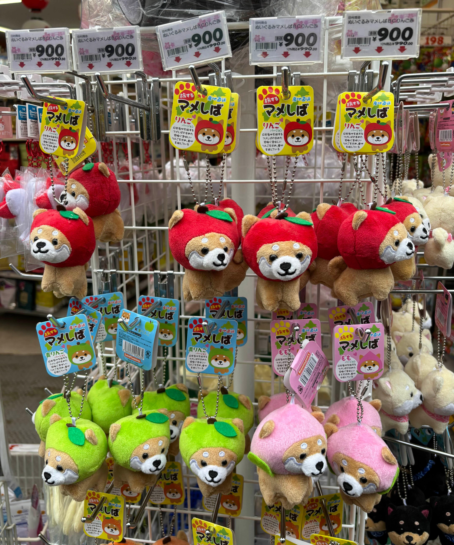 드럭스토어 구경을 마치고 아메요코초를 걷다 보니 귀여운 인형 가게도 눈에 띄었습니다. 바로 사과를 머리에 쓰고 있는 링고(사과) 버전 마메시바 인형이었죠. 가격은 900엔(세금 포함 990엔)! 아랫줄에는 아오링고(청사과) 버전과 모모(복숭아) 버전도 있어 고르는 재미가 쏠쏠했답니다. 우에노 상점가에는 정말 다양한 상품들이 판매 중이라는 것을 다시 한번 느꼈어요.